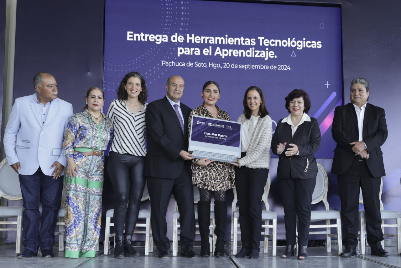 El titular del Instituto Hidalguense de Educación (IHE), Natividad Castrejón Valdez, junto con la directora general de la Unión de Empresarios para la Tecnología en la Educación (UNETE), María Teresa Aguilar Álvarez, encabezaron la entrega simbólica de 302 computadoras, reguladores de voltaje y 20 impresoras, a 20 escuelas donde laboran 342 docentes, atendiendo a una población escolar de más de 8 mil 300 estudiantes.
