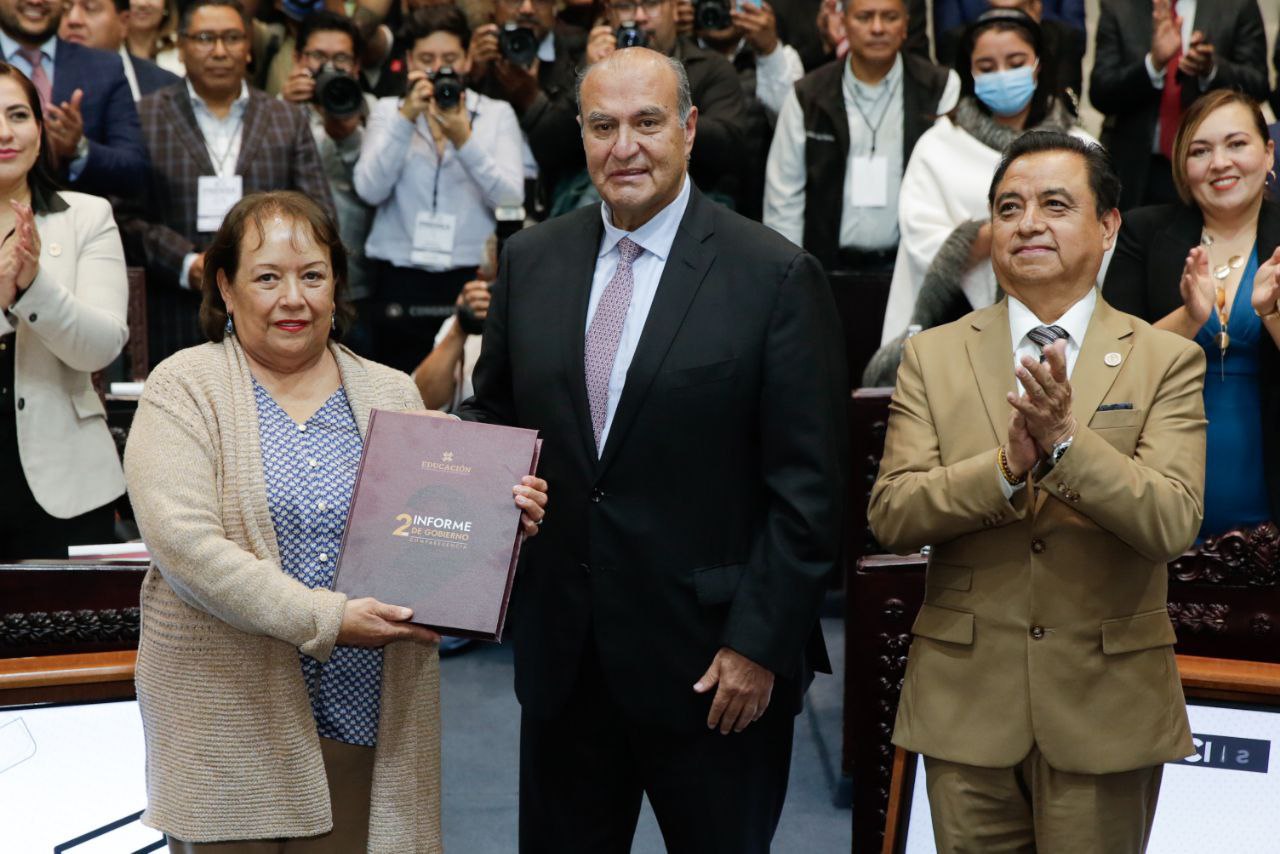 “Se ha invertido en infraestructura educativa y equipamiento, un total de 730 millones de pesos, beneficiando a 180 mil estudiantes de más de mil 200 planteles de educación básica, media superior y superior; de estas acciones destacan: mejoramiento de 4 centros de atención infantil, 23 preescolares, 73 primarias, 43 secundarias, 13 bachilleratos, 11 universidades, 4 normales y 2 subsedes de la Universidad Pedagógica Nacional.