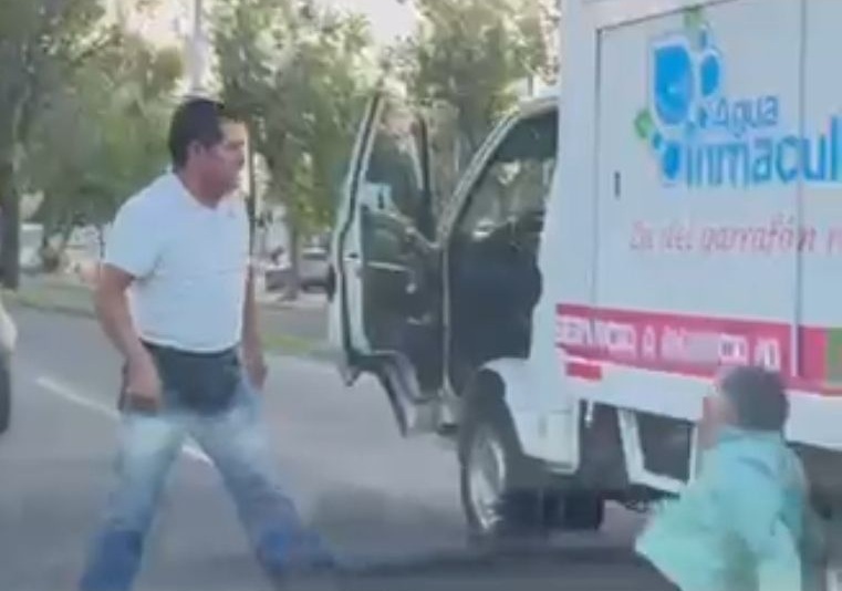 Hasta el momento se desconoce qué originó el altercado, así como el estado de salud de la persona de la tercera edad, que tras ser empujado contra el sueldo, impacta su cabeza contra la base de la camioneta.