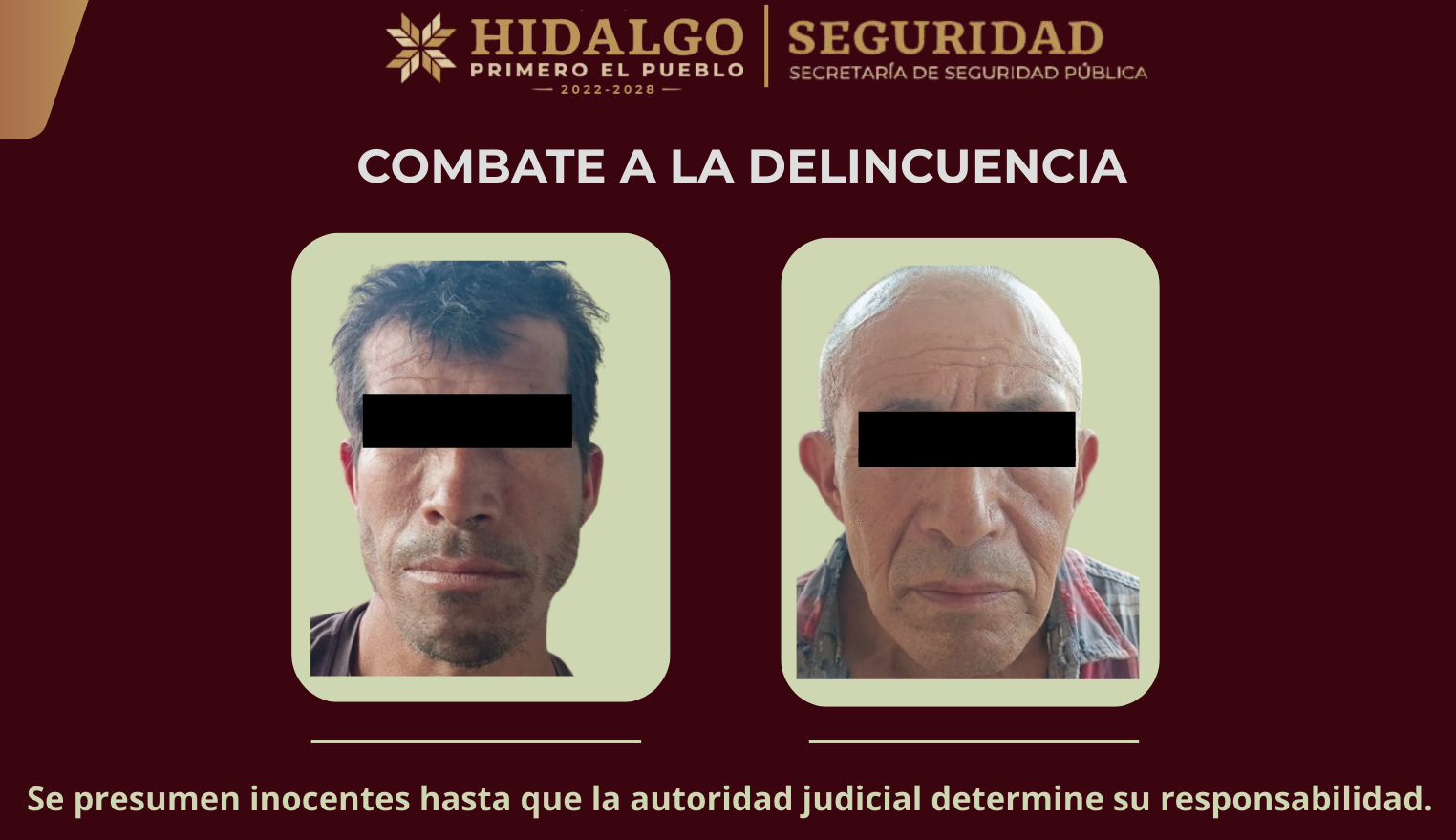 La acción se realizó en un inmueble ubicado en la calle 20 de Noviembre, donde fueron detenidas dos personas identificadas con las iniciales J.C.G. y F.R.A., ambas originarias del estado de Hidalgo, quienes fueron puestas a disposición de la PGJEH para el desarrollo de las investigaciones correspondientes.