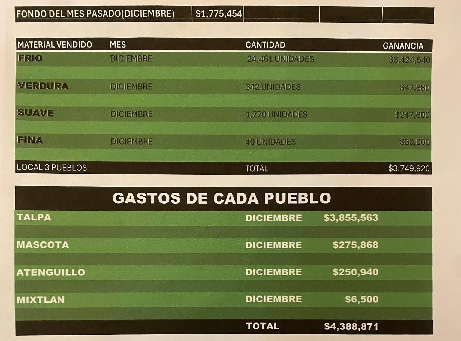 Solo en diciembre de 2025, el CJNG habría reportado ganancias por 8 millones 781 mil 353 pesos, derivadas de la venta de marihuana, cocaína, metanfetamina y fentanilo, así como del control de máquinas tragamonedas. Los registros muestran un flujo constante de recursos provenientes de actividades ilícitas diversificadas.